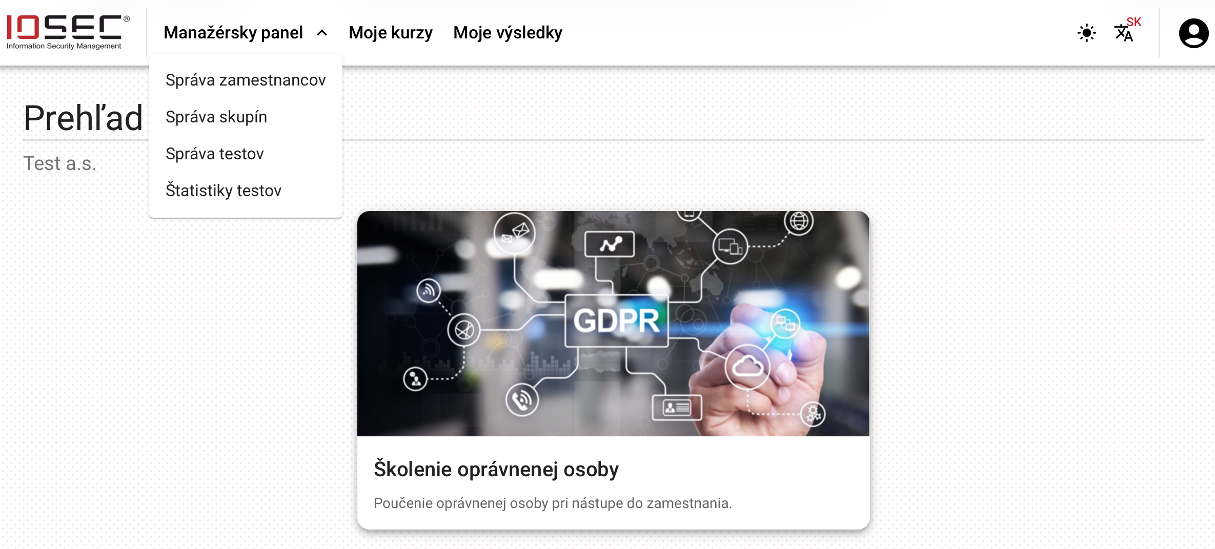 Po úspešnom absolvovaní testu si účastníci môžu vytlačiť potvrdenie o úspešnom absolvovaní školenia, ktoré zároveň slúži ako doklad o poučení a o oboznámení sa s povinnosťou mlčanlivosti.